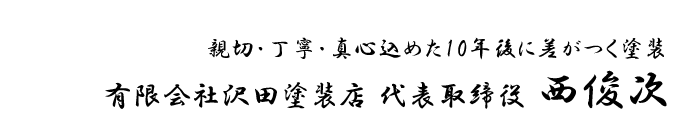 私は、高知で48年続く(有)沢田塗装の3代目代表の西俊次と申します。
