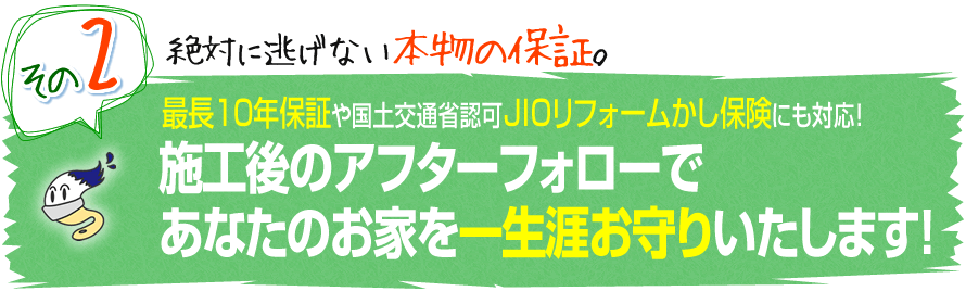 但し、この保険料(1~3万円)はお客様の負担になるため、希望者のみお付けいたします。私どもで施工いただけるなら、次回の塗装まで何があっても、あなたのお家を守ることをお約束します。