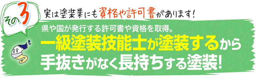 取得後でも不正を行うと、許可書を剥奪される可能性があるため、公共工事などの大型物件の塗装も行っている私どもとしては、剥奪のリスクから考えても手抜きはできません。
