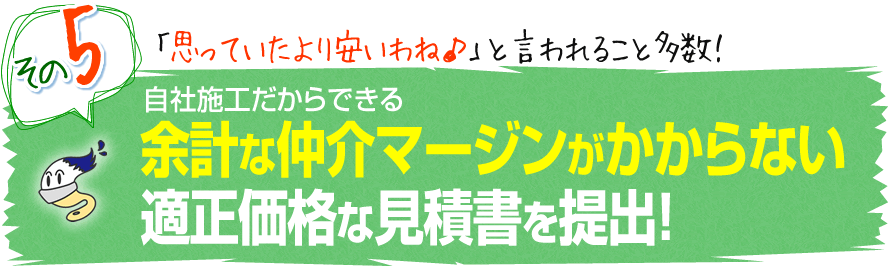 この場合、仲介マージンがお客様の見積書にプラスされています。もちろん、仲介マージン●●円と書いてあるわけではないのでパッと見ると気付きませんが、塗料の単価が少し高かったり、諸経費に含まれていたりします。