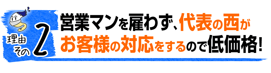 お客様の対応をするのは代表の私です。営業マンを雇わないことで、余計な人件費がかからないので、低価格で施工することが可能です。