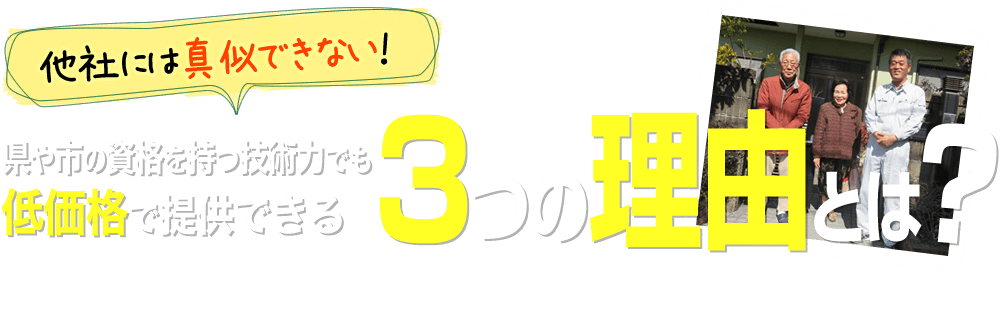 自社職人による施工で、無駄な経費を削減。創業48年の実績、3代に渡り続けてきた豊富な経験と知識により最適な工法を、ご提案いたします。