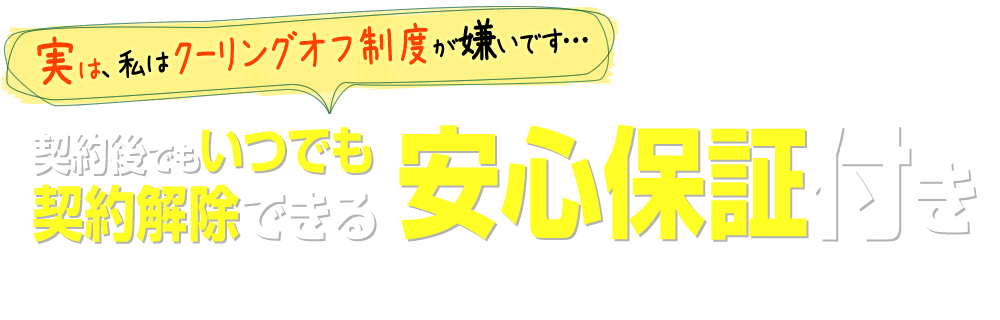 このような場合でも、いつでも契約解除できる安心保証をお付けします。
