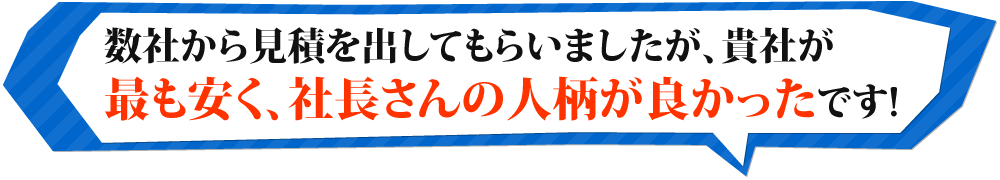 インターネットで調べて良い感触を得て、見積りにきていただいた社長さんのお人柄も決め手になりました。