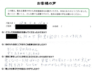 沢田塗装は、このような第三者からも評価された安心の塗装店です。